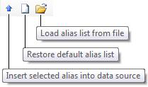 Select an alias from the bottom of the tab, then click the Insert Selected Alias icon on the toolbar.