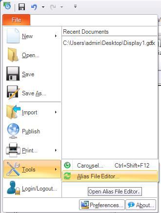 From the GraphWorX File menu, select Tools, then Alias File Editor. This opens the Edit Local Aliases dialog box.
