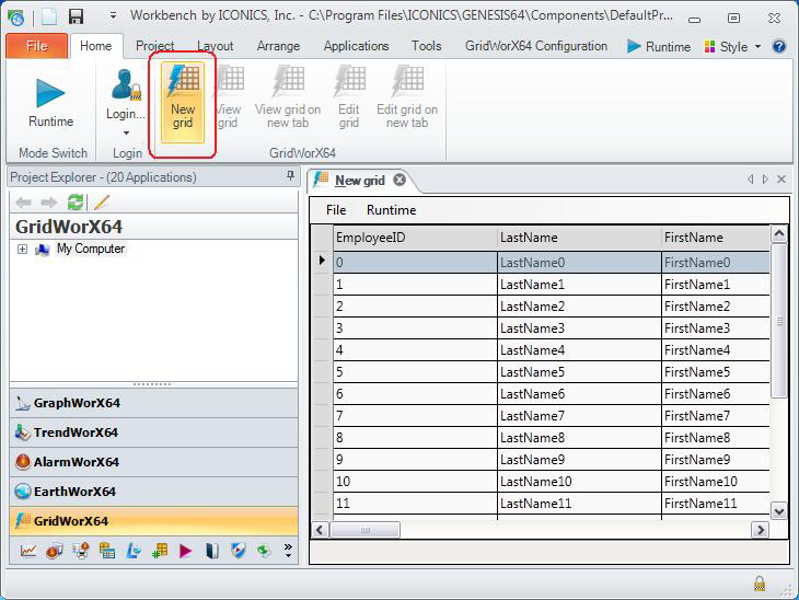 - In the Project Explorer, click on the GridWorX64 provider button bar to bring up GridWorX64.