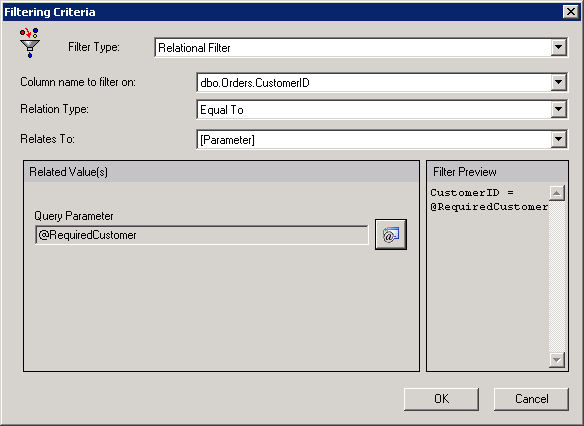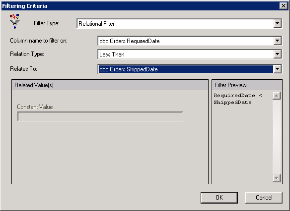 Once you have created all of your filters, you can drag and drop them from one tree node to another, or if you create a new filter while some other filter is selected on the tree, the newly created one will be shown as a child tree node. The tree-like structure for filters displays how they are combined, using AND/OR Boolean operators and parentheses. The rule is simple; each filter node is first combined with its “children,” and then the resulting expression is combined with the “siblings.” Try dragging and dropping several filters onto one another and watch how the SQL preview changes to get an idea of how this works. Click the Toggle Bool button to switch between the AND/OR boolean operators.
