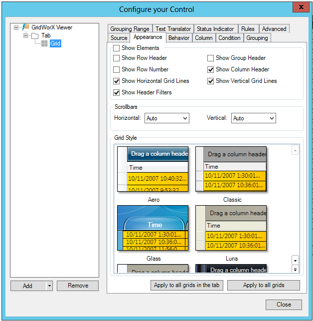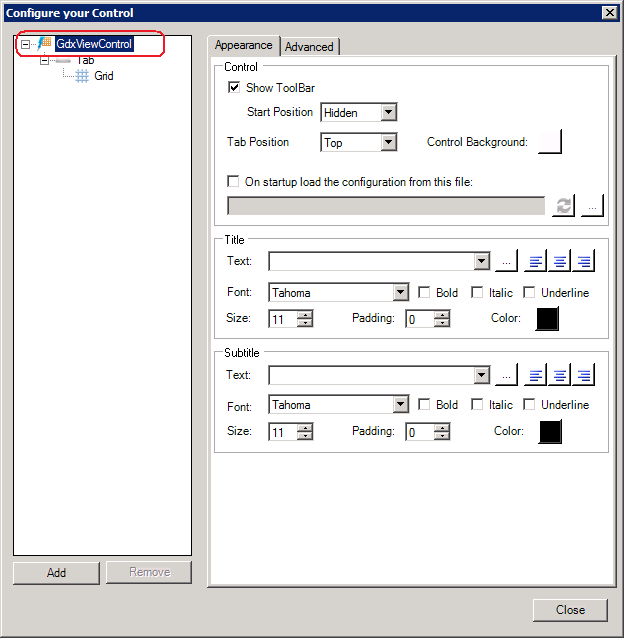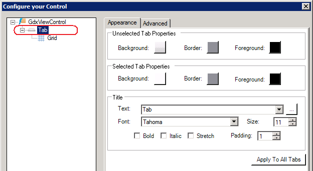 The Appearance tab is different for each of the three levels in the GridWorX Viewer. The three levels and their Appearance tabs are described below: