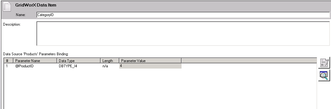 - Right-click on the Data Source and select a new data item. You may want to change the name of this data item. In the figure below, it is changed to CategoryID.
