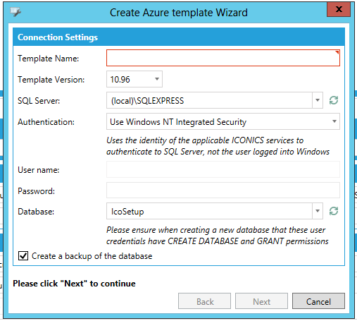 Create Azure template Wizard Window