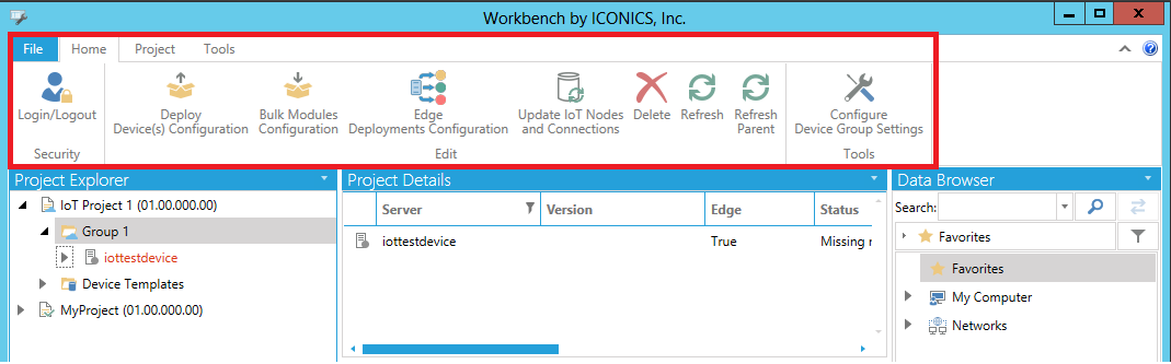 The following options are available for groups selected within IoT projects in the Project Explorer in the Workbench. [Note: For info on how to create an IoT Project in the Workbench, click HERE.].