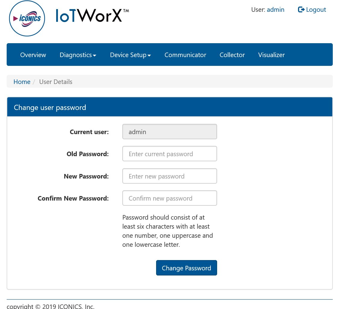 Once you have accessed the device's IoTWorX Console and selected "Diagnostics and Configuration", you can log in via the screen shown below.