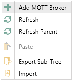 Select an existing MQTT Broker or create a new one. To create a new MQTT Broker, right-click on MQTT Brokers in the Project Explorer and select Add MQTT Broker, as shown below.