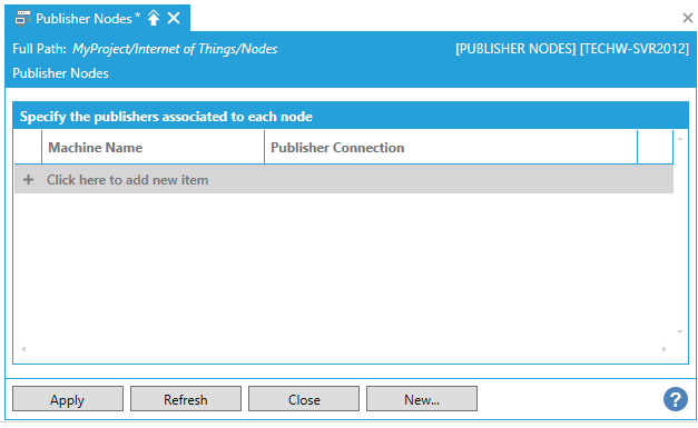 This opens the Publisher Nodes properties window, shown below, in the Workbench.