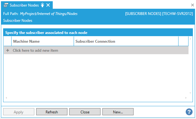 This opens the Subscriber Nodes properties window, shown below, in the Workbench.
