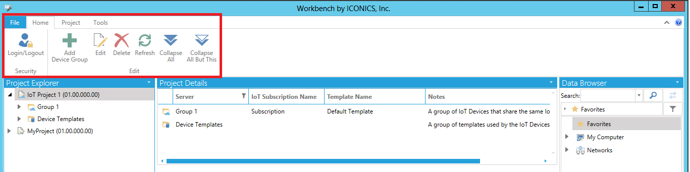Collapse All But This - Collapses all opened branches, except for the selected IoT Project, within the Project Explorer in the Workbench.