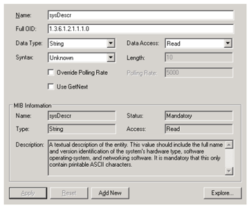 If a device does not fully support SNMP browsing (because of a different implementation) it is still possible to add the OIDs manually to SNMP Configurator. This topic describes how to setup SNMP devices that are not browseable using the Unified Data Browser. It also shows how to change the SNMP version manually, depending on the SNMP device version.