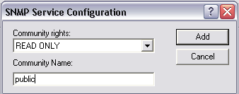 - Add the community names for the devices from which you would like to receive SNMP data. Specify Community Rights as well.
