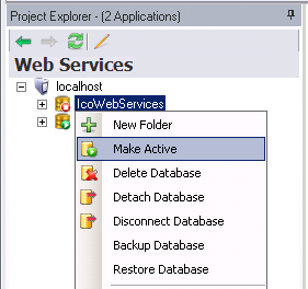 Right-click on the database icon and select Make Active. If the Make Active selection is grayed out, then the current database is already the active database. You can tell which database is currently active by the nearby icons: Active (