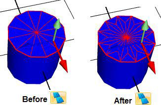 Use this button when you want to be able to select a more finite triangle of the face. The following example shows how a 12-triangle face becomes a 36-triangle face after clicking this button.