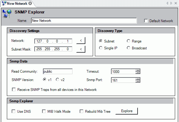 SNMP Explorer Window - Editing SNMP Network Settings