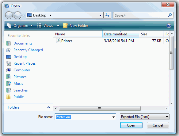 The Open box appears, at which point you can navigate to an existing file location, enter the file name in the text entry box or select a recent file by clicking on the down-facing arrow. Click Open to proceed.