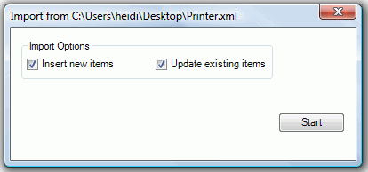 Insert new items. When the import file contains items that are not yet in the configuration database, then it creates them. If you leave this check box empty, the import skips items that are not in the configuration database; it does not import them.