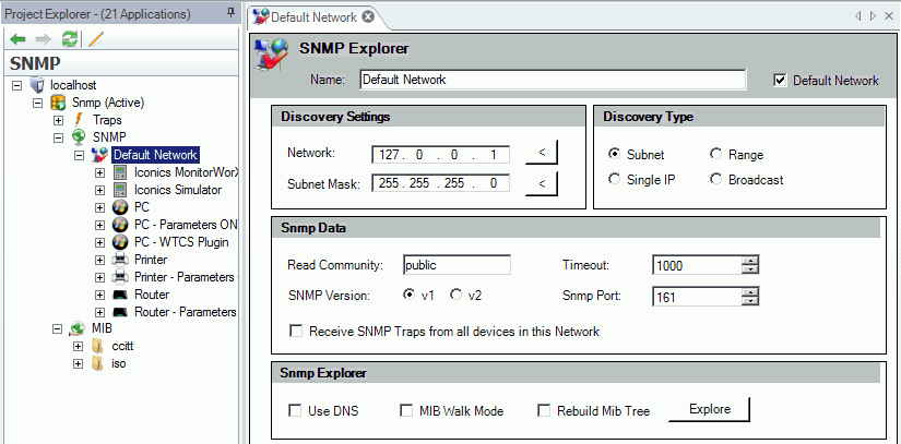 Rebuild MIB Tree - When the data are collected through SNMP Explorer, all the information will be stored in the SNMP tree. You can organize the data like a standard MIB tree by checking this check box. Otherwise you will organize the data by creating your own folders.