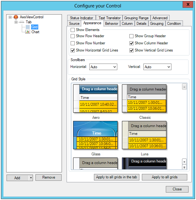 The Appearance Tab for a Grid