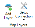 The Map Layers section of the EarthWorX Ribbon allows user to add new layers and connect to various GIS providers.