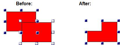 Union - Joins the objects together as one and removes the lines where they were joined. Click here to see two objects before and after a Union.