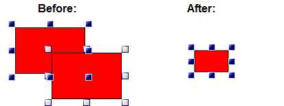 Intersect - Joins the objects together where they intersect and displays only the intersected section. Click here to see two objects before and after an Intersect.