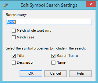 Note: If symbol properties are altered from their default settings, this will affect the symbol search results. For example, if a user changes the search terms of a specific symbol, these search terms will then be retained when conducting a search and will yield the altered symbol in addition to the symbols containing that search term by default. |
