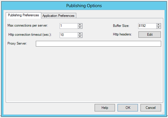 The Publishing Preferences tab of the Publishing Options dialog box is shown in the figure below.