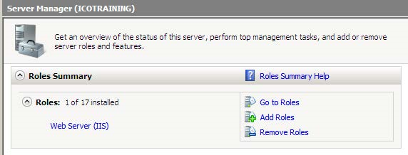 If you have this role as shown in Figure 2, skip to step 6, if not, click the Add Roles link to bring up the Add Roles Wizard.
