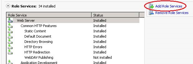 Scroll down to find the Role Services Section and click the Add Role Services link.