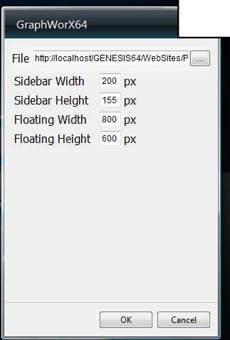 1. You can click on the ellipse button to browse for an example gadget like: http://MyGENESIS64Server/genesis64/websites/pubdisplay/gauges.htm