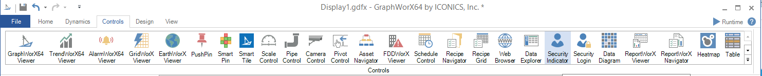 To create a Security Indicator Control, select the Security Login control icon from the Controls Ribbon.