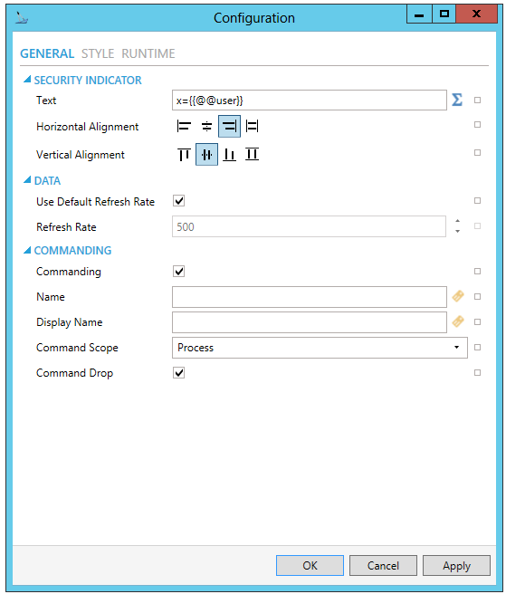 Security Indicator Configuration Window - GENERAL Tab