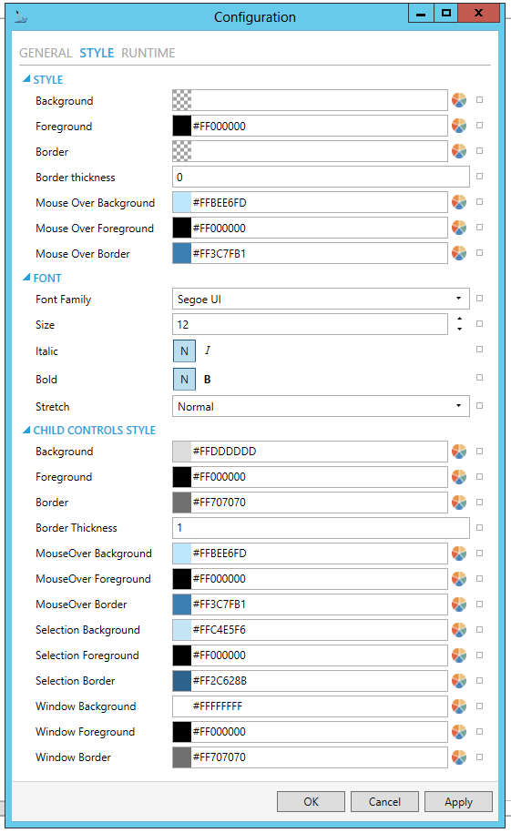 button to open the Brush Picker window and set the properties for your border of child control windows.Security Indicator Configuration Window - RUNTIME Tab