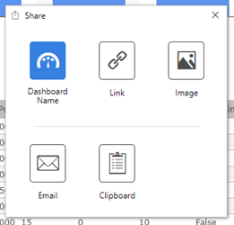 Now, users can choose the Share option on a dashboard and pick Dashboard Name. This will retrieve the proper dashboard name for use in commanding and the Target field of widgets. The user can email this name or copy it to the clipboard.