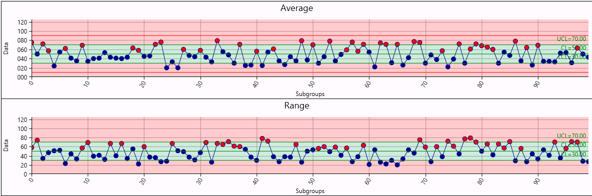 NOTE: Two charts will be created – primary showing Average and secondary showing Range (Data source path of each chart is automatically adjusted to point to proper data).