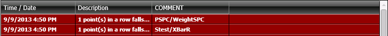 NOTE: Comments always start with a P or S character depending on whether the Primary or Secondary Control limit was violated.