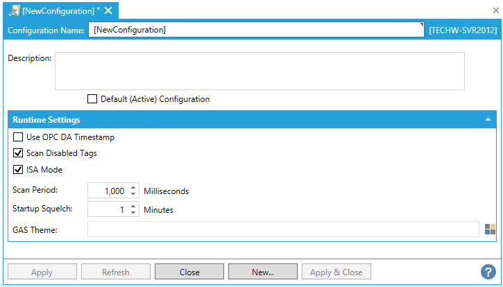 2. If you have multiple alarm configurations, you can specify a default configuration that will be used for the active database . If you wish to make this the default configuration for the database, enable the Default (Active) Configuration check box (optional).
