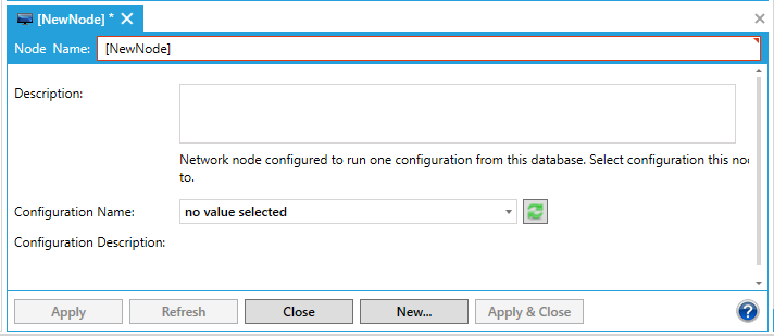 When you have finished configuring the node, click the Apply button. The new node appears under the Nodes tree control.