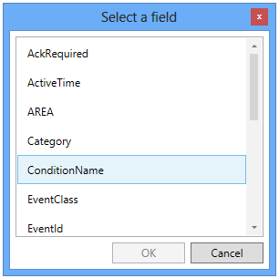 Enter a Message in the text entry field. Similar to the Subject field, you can click on the (Browse Tags) link to open the Data Browser and select a data source that can populate the Message field. Clicking on the (Add alarm field) link brings up the Select a Field dialog, where you can create subject and message configurations that will replace the field name with the value from the alarm that triggered the message. For instance, an example string can be: