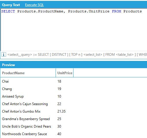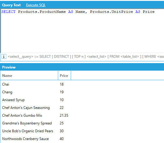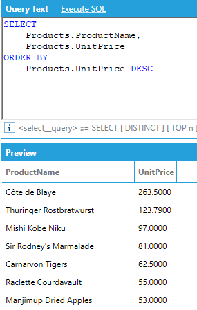 It is possible to sort the results of an AnalytiX-BI query using the ORDER BY clause. For example, to sort products from the most to the least expensive: