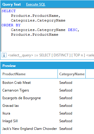 The ORDER BY clause supports the ASC and DESC modifiers to specify the order of the sorting: if no modifier is specified, ASC is used. Multiple columns can be used for sorting, and the sequence of the sort columns in the ORDER BY clause defines the organization of the sorted result set. For example: