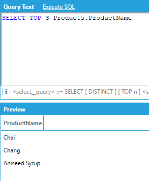 AnalytiX-BI supports the TOP keyword to limit the number of rows returned by the query: