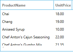 For example, we can subscribe to the Products table in the default Northwind Data Model from a GridWorX Viewer.