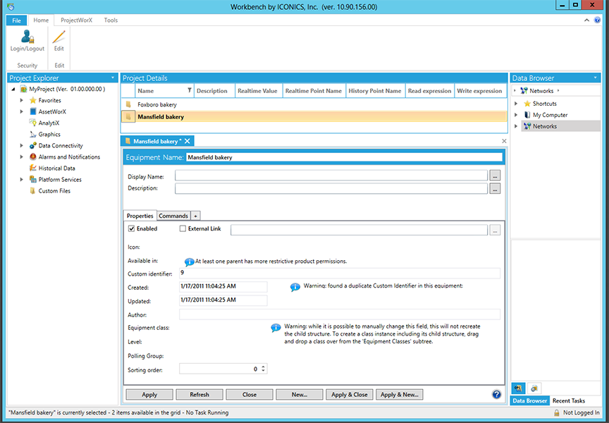 The AssetWorX found in the Workbench provides data sources and visualizations (HMI, charts, etc.) in a logical hierarchical structure. The Asset Tree itself provides intuitive, easy setup and configuration to any level of aggregation, from an entire campus or enterprise down to a specific meter or user.