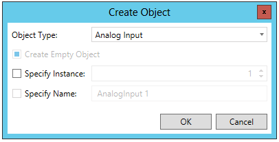 Specify the Object Type in the dropdown menu (Analog Input by default) and specify the right Instance # (usually 1). The Object ID should be generated automatically.