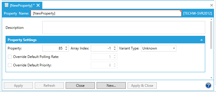 Type a name in the Property Name textbox and a description in the Description textbox (optional).