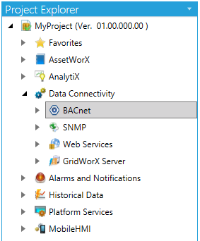 You'll see the BACnet node of the Project Explorer, as shown below.