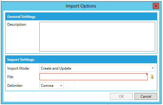Import a file into the database Dialog