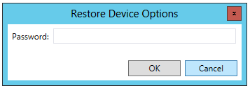 The Restore Device Options window appears. Enter the device's password to start the restoration procedure, then click OK.