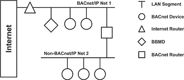 An interesting attribute of the Building Automation and Control Network (BACnet) is that Ethernet is supported along with several data links, and communication between the various data links is possible through the use of routers. Each data link is treated as a separate network and the collection of data links is considered a single BACnet internetwork. BACnet routers facilitate the connections, but when BACnet/IP is used as one of the data links, adjustments must be made to how BACnet routers are used in an IP network.